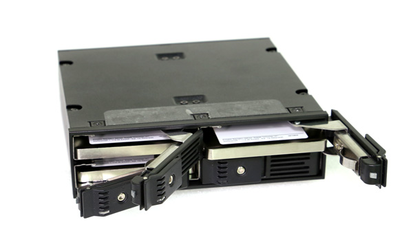 There are two principle ways that drives are secured in these types of hot swap enclosures (or backplanes): with or without trays. The primary difference between these two methods is whether the latching mechanism is connected to the individual drive via a tray or it is connected to the enclosure.