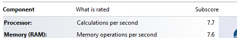 This is slightly above the E3-1230 (7.6) and the same as the Core i7-2600K (7.7). Overall a good result, but WEI scores are not the best real world indicators these days.