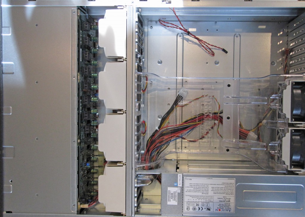 Hot swap fans are another common feature of a Supermicro chassis. The center fan partition contains four hot swap fans and the rear of the chassis features two. Most Dell, HP, and IBM storage server chassis also have hot swap fans.The main reason for this is to enable a high degree of field serviceability. With cases like the Norco RPC-3116, fans must be unscrewed to uninstall, and then the replacement fan screwed in during install. During these procedures, one risks a screw falling onto electrical components during the process or having to shutdown the server to replace the fan. One will note that the chassis fans produce great airflow, but are noisy!