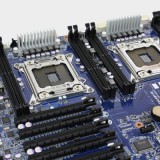 With all of that PCIe bandwidth from the Intel Xeon E5-2600 series one can run up to four PCIe 3.0 x16 electrical cards or even a PCIe 3.0 x16 electrical with six PCIe x8 electrical slots. This is a great configuration for adding multiple GPUs, storage controllers, high speed network controllers and etc. The Gigabyte GA-7PESH3 supports NVIDIA 4-way SLI and AMD CrossFireX delivering high-end workstation graphics capabilities.