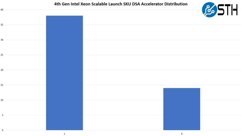 One accelerator each chip has is the DSA. 73% of the chips only have one instance, but 27% of the SKUs have four. Only 58% of the XCC-based parts have all four active.