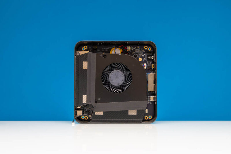 Opening the bottom of the system, we can see the cooler for the AMD Rzyen AI 9 HX 370.
