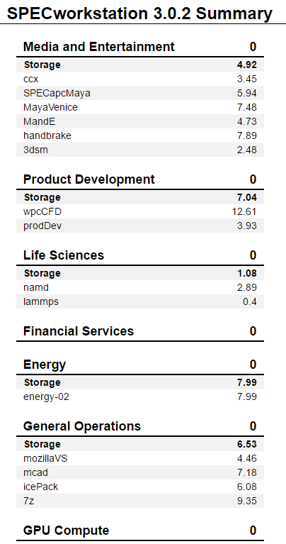 SPECworkstation benchmark is an excellent benchmark to test systems using workstation-type workloads. In this test, we only ran the Storage component, which is fifteen separate tests.