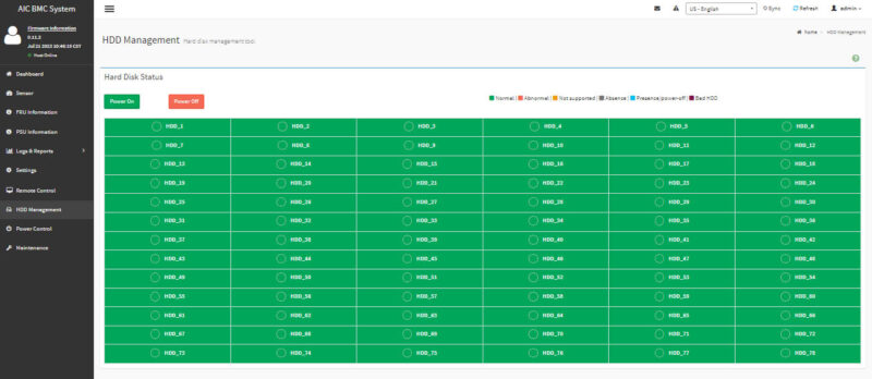 We showed the ASPEED BMCs on the rear SAS I/O modules. The chassis does have a BMC to help control and manage the JBOD. We found one cool trick, there is a hard drive management feature.