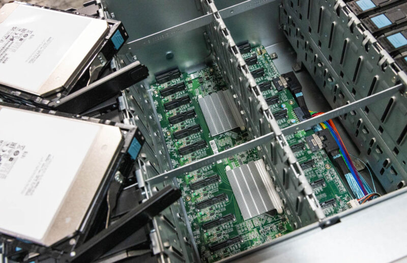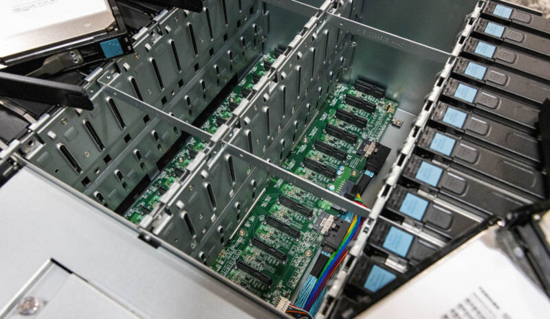 Inside we can see the backplanes with SAS4 expanders on them and then the cables.