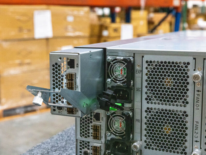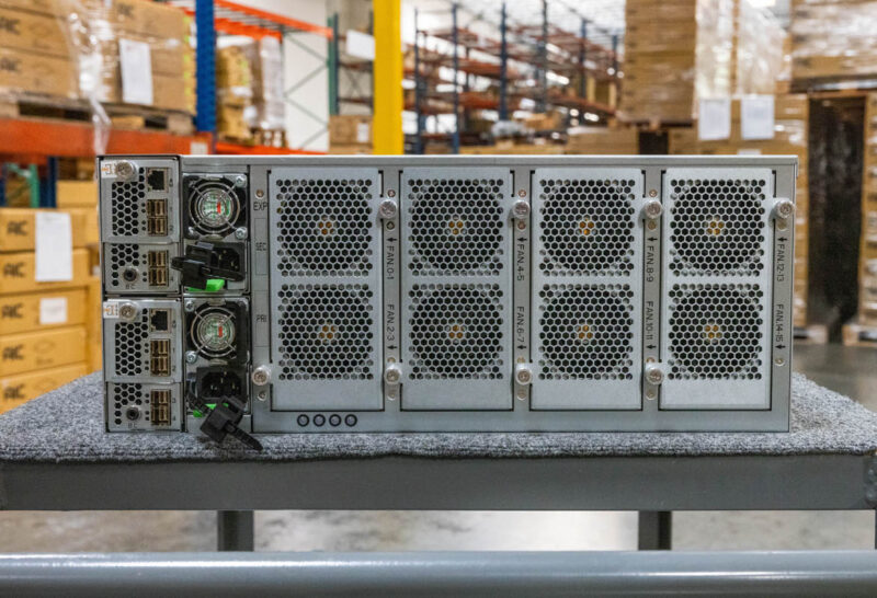 On the rear, we ave the SAS I/O modules, the power supplies, and fans.