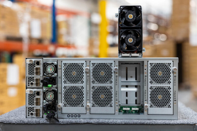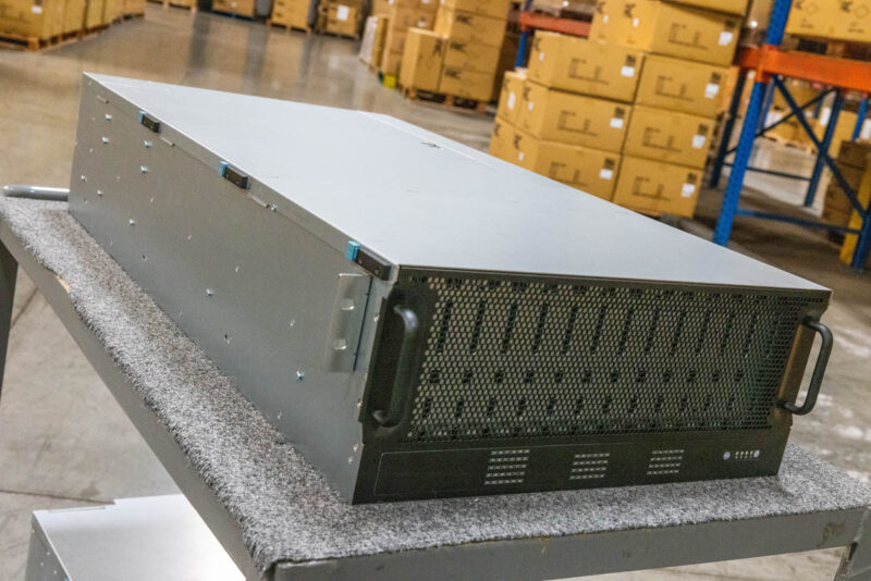 A bit of background on this one. Last year we reviewed the AIC HA401-TU High-Availability SAS Storage Server. That review happened just as the move to Arizona was starting. The goal was to review AIC’s 78-bay JBOD at the same time. Toshiba lined up 78 of its MG08 16TB enterprise drives, but then between firmware updates and such, we missed our window before packing the Austin lab. A few months ago, we did something different. The system was at AIC’s warehouse in southern California so I jumped on a quick flight to go see the JBOD. If it looks like the photographs of AIC’s storage chassis are in a warehouse, that is because that is exactly the case. AIC let me put the JBOD on a cart and take photos in the warehouse among the forklifts moving pallets around me.