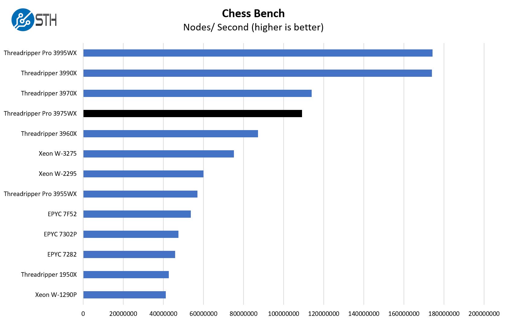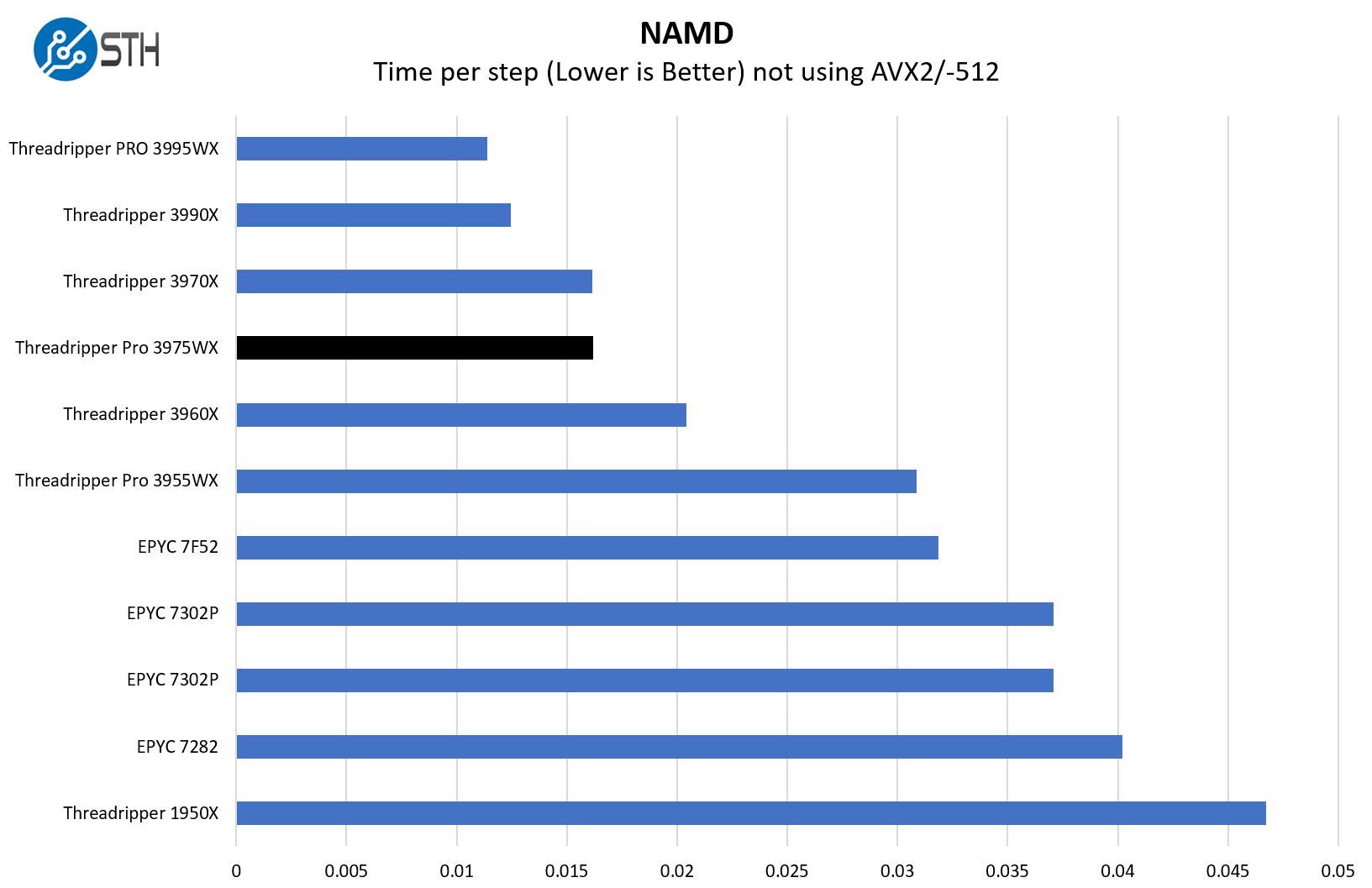 Here we get a nice uplift over the Threadripper 3970X which is consistent with what we saw on the 64-core 3995WX v. 3990X. Our sense is that this is the impact of memory bandwidth on the solution.