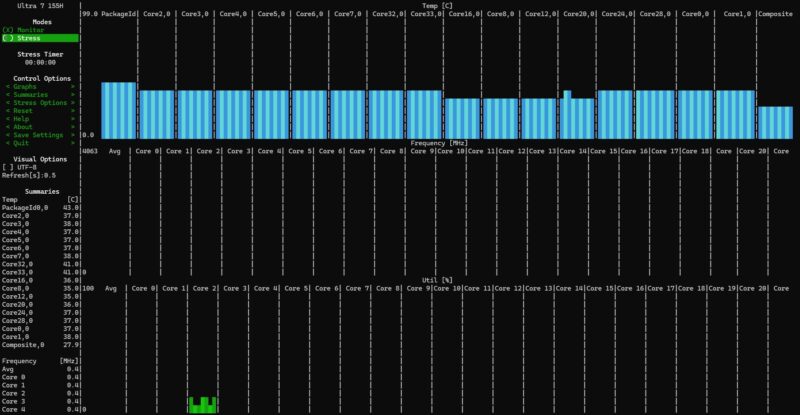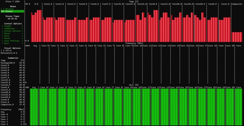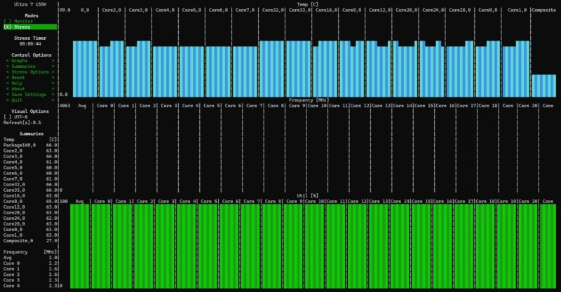 Putting the system under stress-ng load we see the package power consumption jump to just over 63W for a brief period of time as the system also jumps to 73-80W. The noise of the system will hit 40dba in the same environment.
