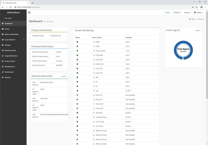 Here one can see that ASRock is using a MegaRAC SP-X package that is the company’s newer offering. We like this new firmware as it offers a few new features including a HTML5 iKVM capability as well as a more mobile-friendly UI.