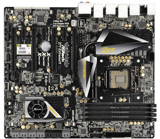 - Form factor = The ASRock Z77 Extreme11 is an EATX motherboard. This is quite large for a LGA1155 based motherboard. It won’t fit all cases. With 10x SATA3 ports, many expansion slots, an onboard RAID controller and etc, you’re going to need room lots of room.