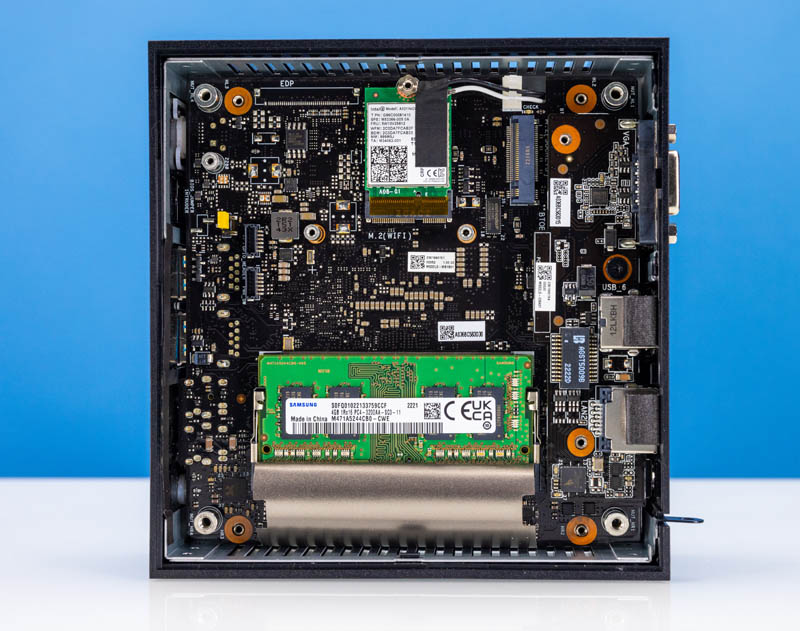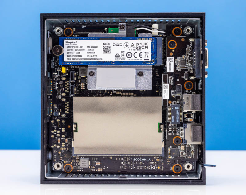 A small but notable item compared to other mini PCs is that there is more than just bare components here. For example, there is a cover over the SODIMM slots. There is also a small metal cover between the SSD and the WiFi module that then has a thermal pad to interface with the bottom cover’s metal. We have seen some mini PCs with little thought to cooling components other than the CPU, and this is different.