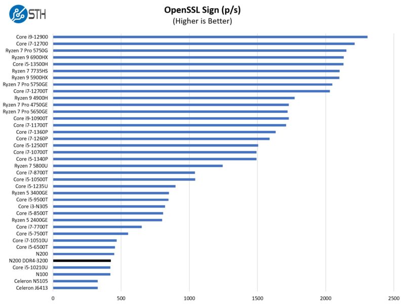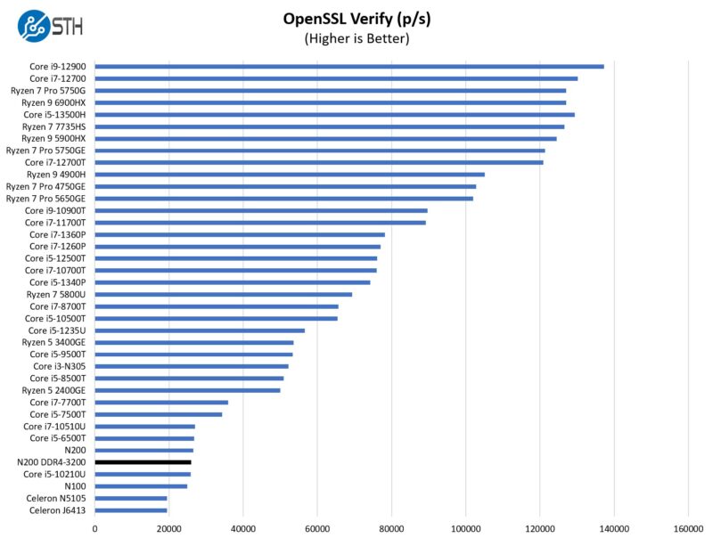 On the OpenSSL side, we saw this was again slower than the DDR5 N200 implementation. Our sense is that ASUS is tuning more for lower power operation than it is for all-out chip performance with this system. That makes sense given the form factor.