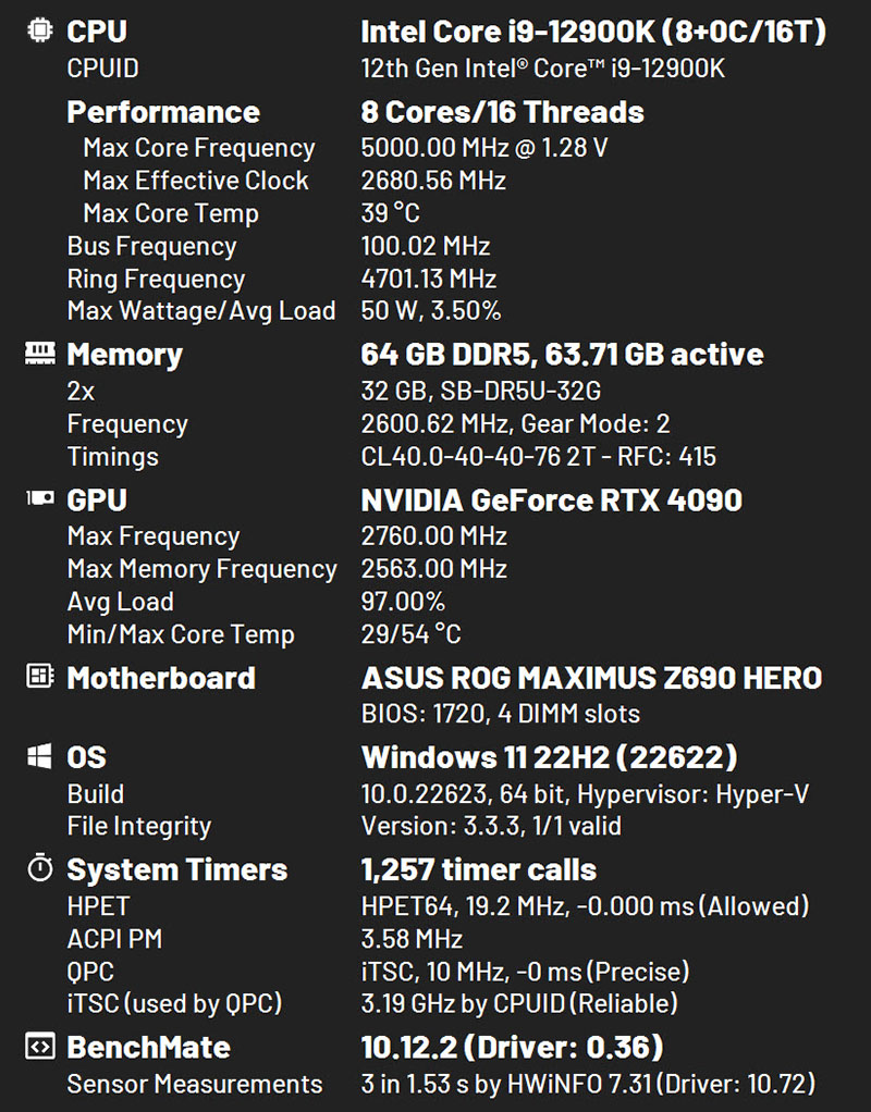 - Motherboard: ASUS ROG Maximus Z690 Hero