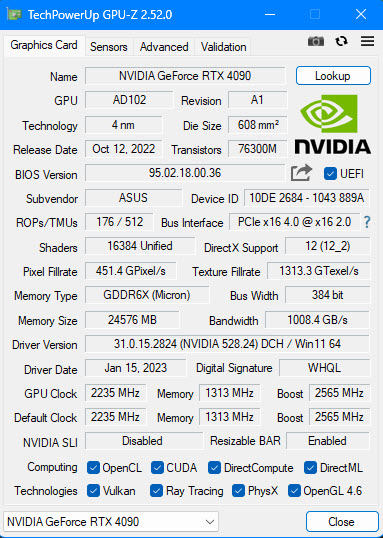 - Graphics Coprocessor: NVIDIA GeForce RTX 4090 (AD102)