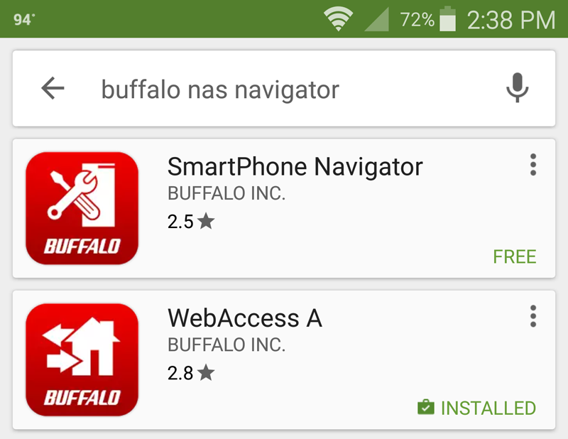 In addition to all the features, we have just shown there are also apps you can download for your cell phone to control and monitor your Buffalo NAS. We use a Samsung Galaxy Note 4 so we entered the Google Play Store and searched for Buffalo NAS and found a list of apps that we can use.