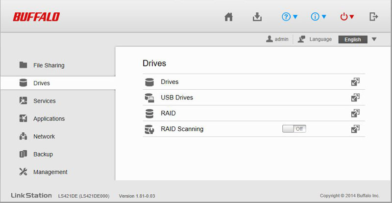 While using a single hard drive in network attached storage devices can be done inexpensively they have a lack data protection. If the drive fails, you are out of luck and more than likely you have lost your data. Like the Buffalo LS220DE which we reviewed earlier, the LS421DE offers data protection when using RAID 1.