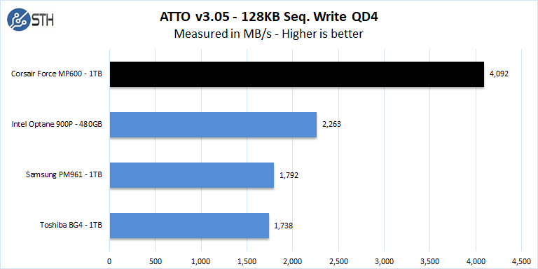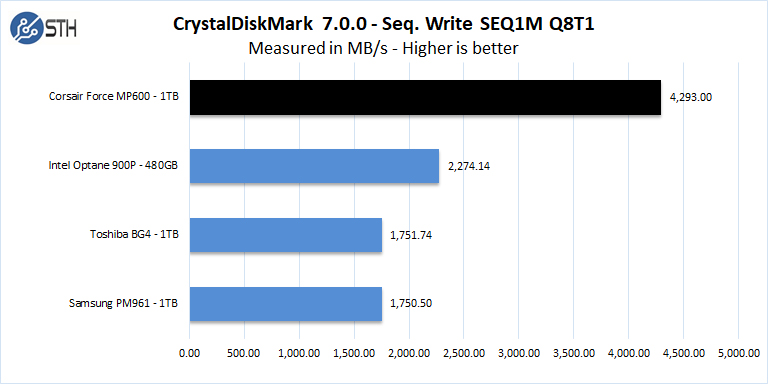Overall we see a huge boost in performance over Gen 3 SSD’s, even over the Intel Optane 900P, which has been a top performer. The Corsair Force MP600 does drop in the Random Writes in 4KiB Q1T1 results where the Optane SSD shines.