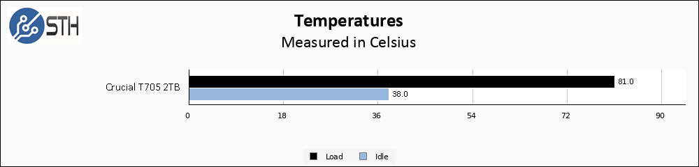 We monitored the idle and maximum temperature during testing with HWMonitor to get some idea of the thermal performance and requirements of the drive.