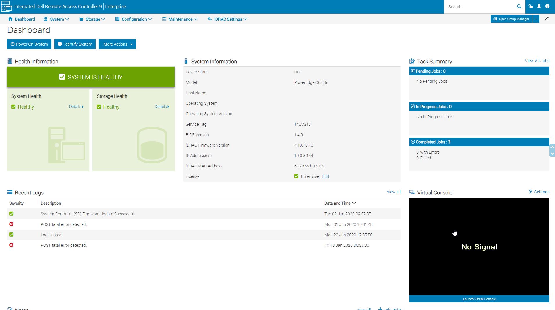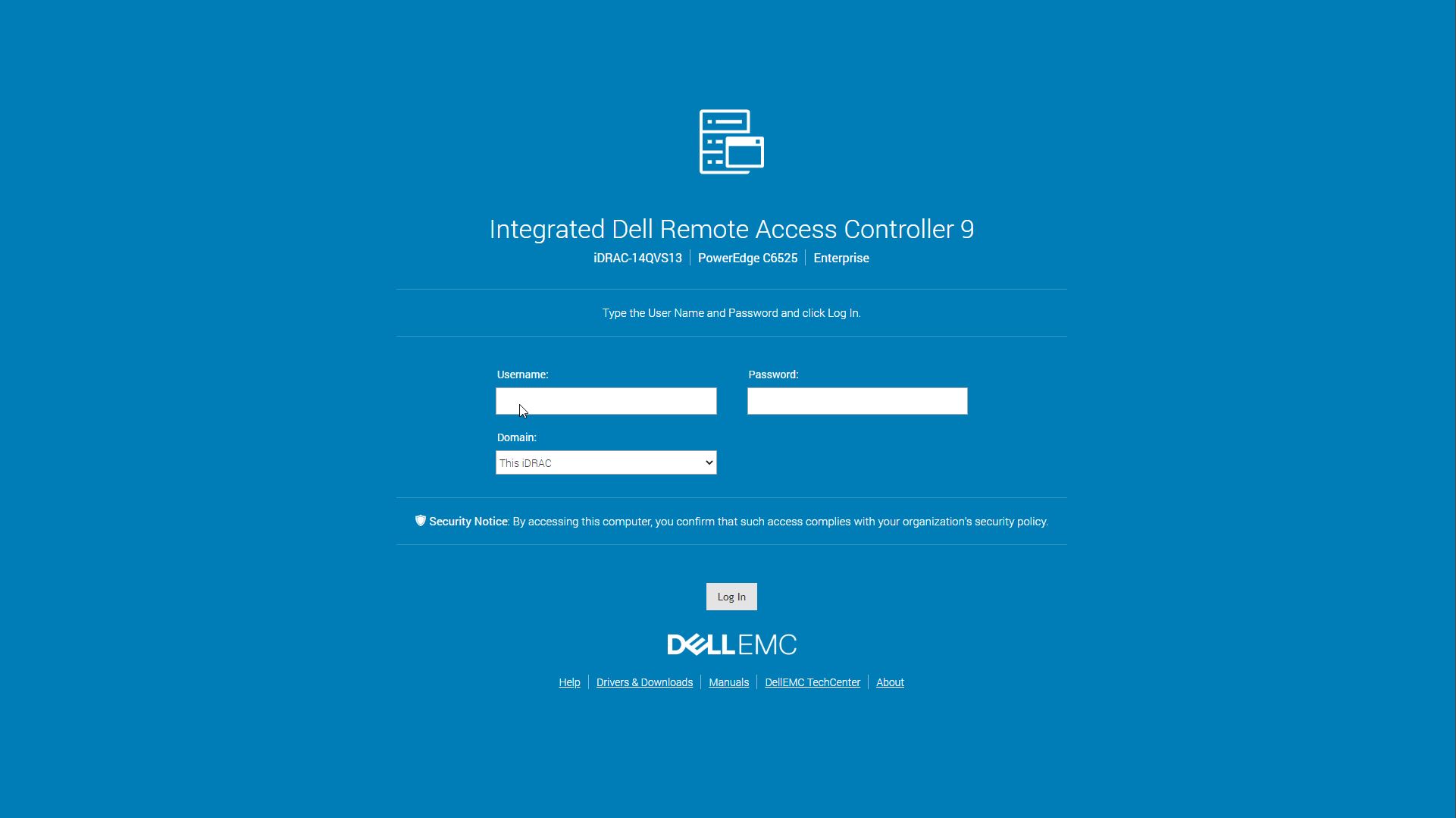The Dell EMC PowerEdge C6525 offers Dell iDRAC 9. Logging into the web interface, one is greeted with a familiar login screen.