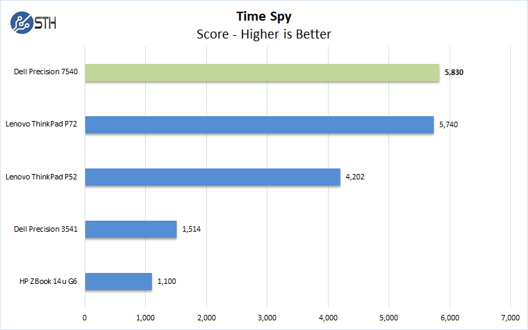 In 3DMark Suite Testing the Dell Precision 7540 Mobile Workstation performs about where we would expect. The Lenovo ThinkPad P72 uses a larger previous-generation GPU.