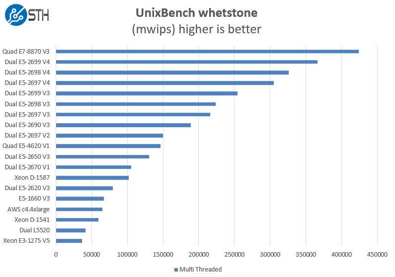 Somewhat surprisingly we find the Intel Xeon E5-2697 V4 perform better than several of the older configurations we have tested. Performance was very good on this complex benchmark.