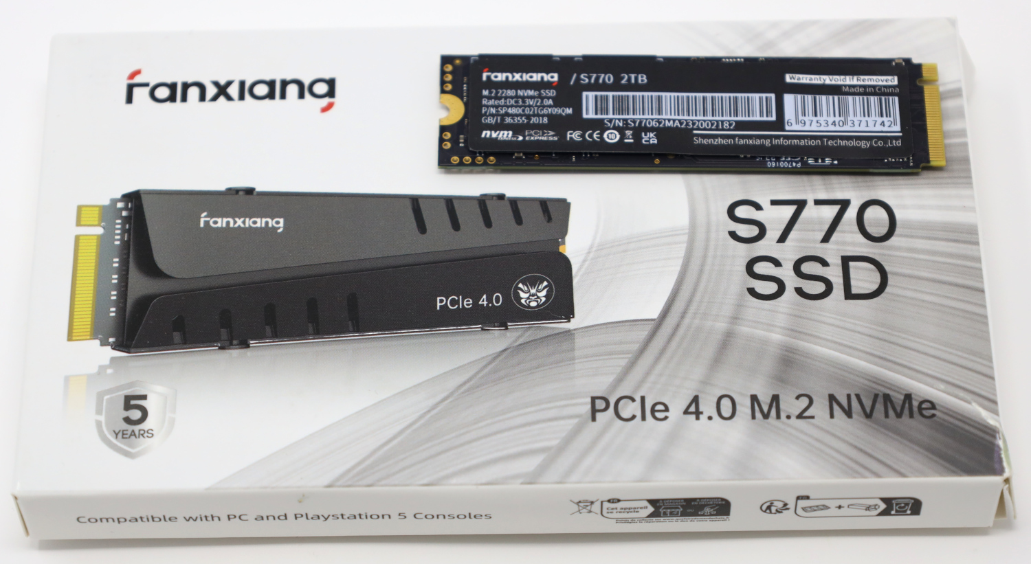 We purchased the Fanxiang S770 2TB box for $90, which includes a heatsink and M.2 screw. That pricing is very low, with almost all competing big-brand drives like the Crucial P5 Plus coming in at $110 or more. The S770 is the least expensive 2TB 7000 MB/s Gen4 SSD I can find.