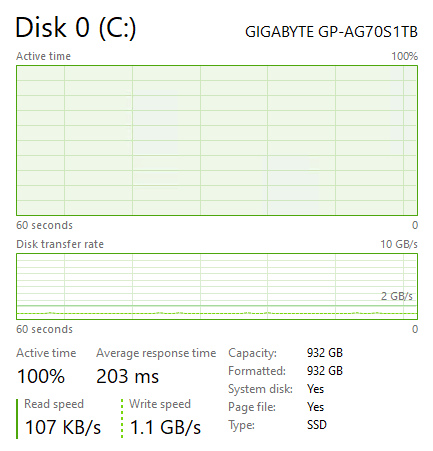 Thanks to the very effective heatsink, the Gigabyte AORUS 7000s 1TB stays relatively cool at 60C under load. This temperature was likely helped by just how fast the drive managed to fill up with data, which is when they tend to hit their peak in my testing. It is possible the drive could get hotter, but the situation would have to be very stressful for the drive.