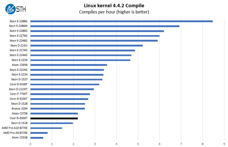 This is one of the most requested benchmarks for STH over the past few years. The task was simple, we have a standard configuration file, the Linux 4.4.2 kernel from kernel.org, and make the standard auto-generated configuration utilizing every thread in the system. We are expressing results in terms of compiles per hour to make the results easier to read: