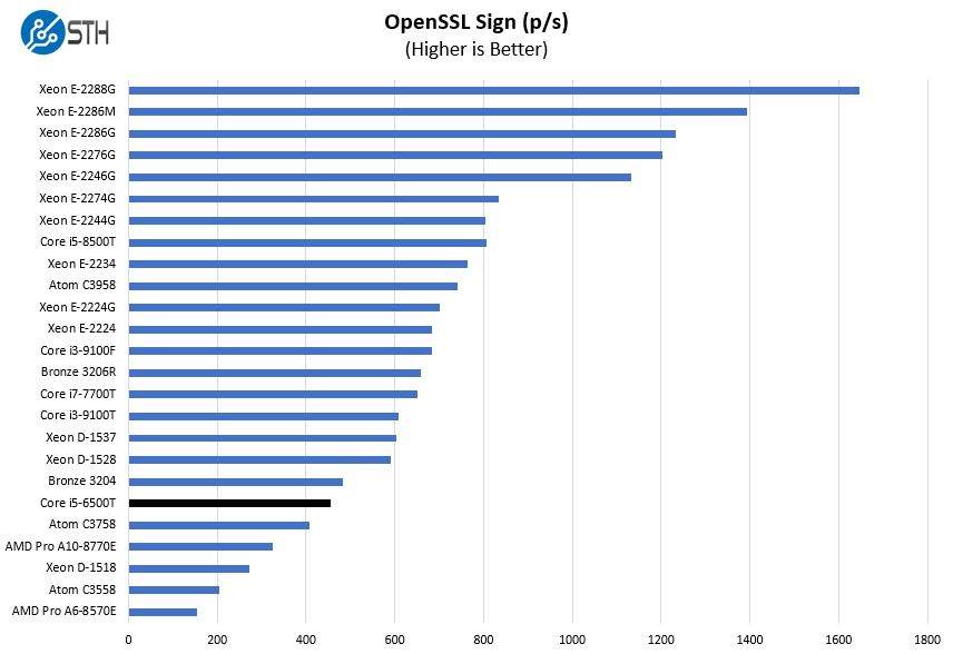 OpenSSL is widely used to secure communications between servers. This is an important protocol in many server stacks. We first look at our sign tests: