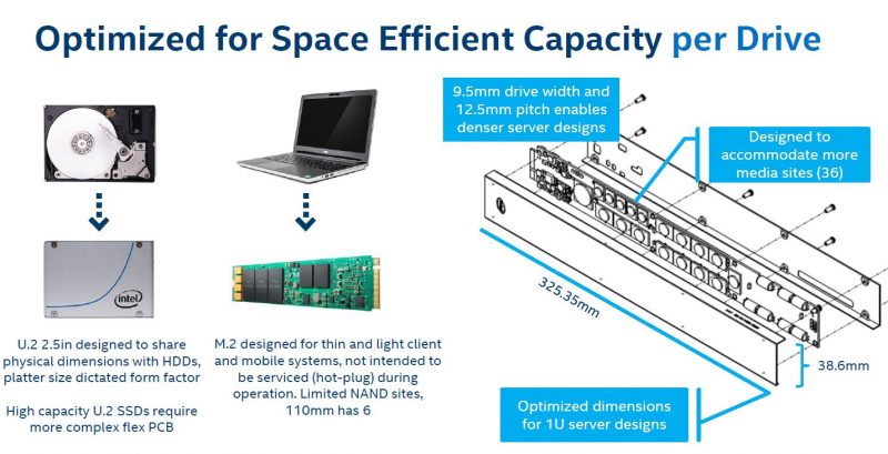 We first saw the Intel Ruler SSD in 2017. At that time, it was an Intel-specific standard that actually was deployed by (at least) one public cloud provider. The promise of the new form factor was a SSD form factor more aligned to flash storage than traditional rotating media.