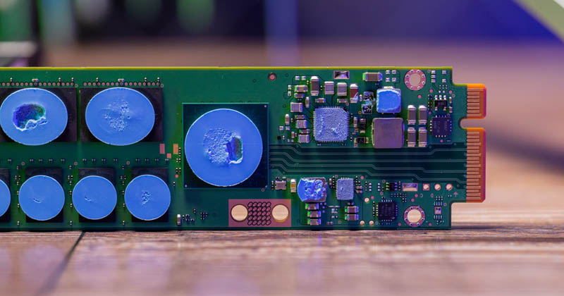 Here is a close-up of the capacitor side. One can see the PCB says “Cliffdale RSSD” and our sense is “RSSD” means “Ruler SSD”.