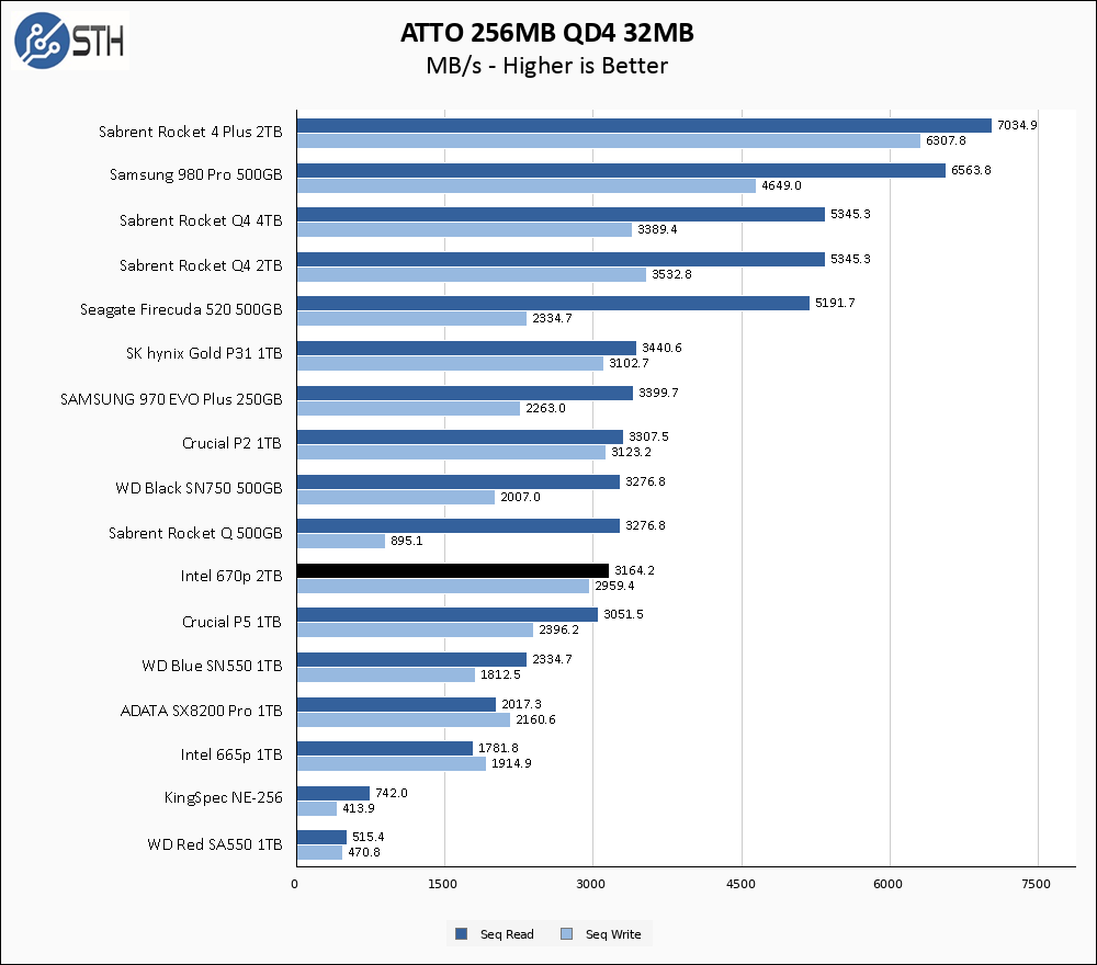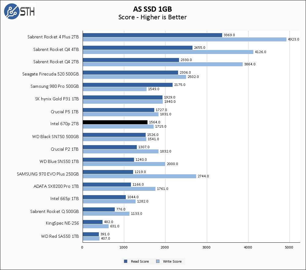 In AS SSD, the Intel 670p 2TB returns to the middle-of-the-pack, with a respectable but not leading performance.