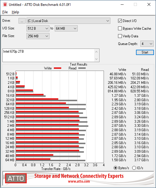 The ATTO Disk Benchmark has been a staple of drive sequential performance testing for years. ATTO was tested at both 256MB and 8GB file sizes.
