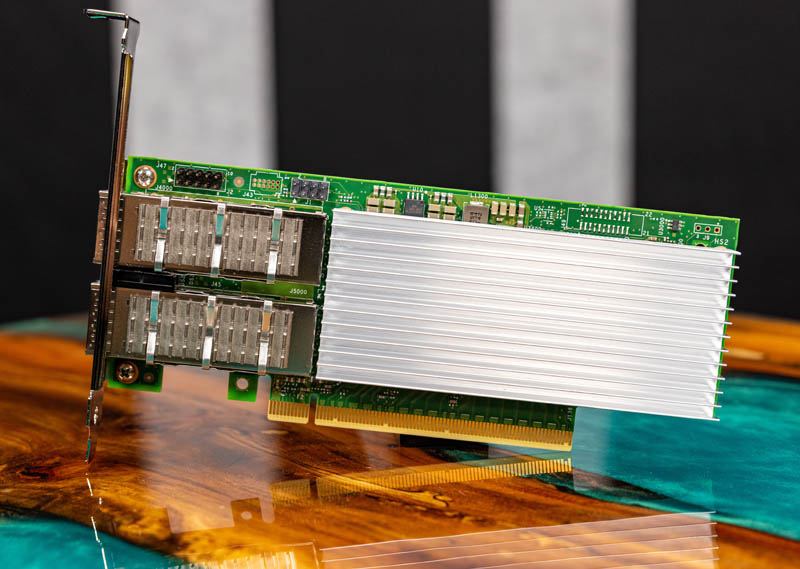 We are showing the full-height bracket in these photos, but the NIC also has a low-profile bracket option. One can see the two QSFP28 cages on the bracket.