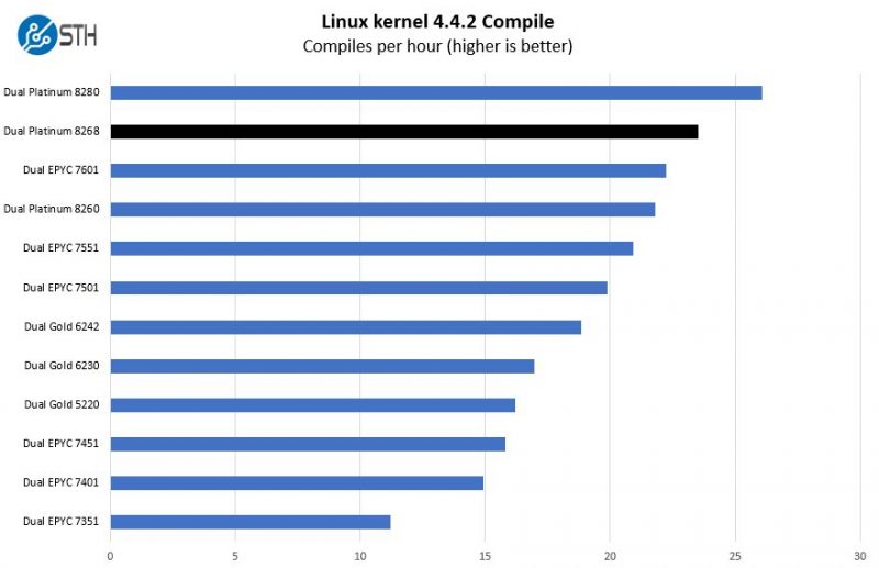 Here we can see the performance come in just between the dual Intel Xeon Platinum 8180 and AMD EPYC 7601 parts. This is a great result for the Intel Xeon Platinum 8268.