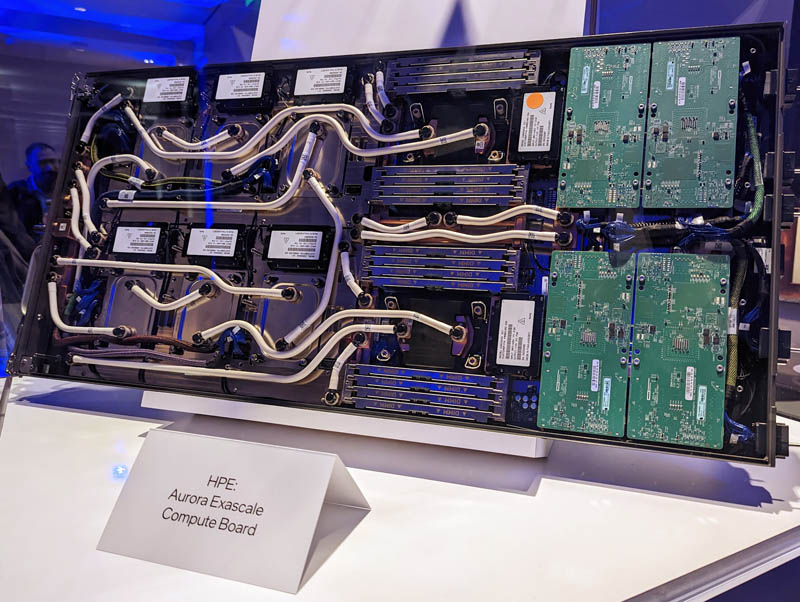 We saw another Aurora Exascale blade for Intel’s installation in HPE Shasta platforms. This is one we have had A Look at a 2023 Top500 Aurora Supercomputer Node with Intel Ponte Vecchio for more details: