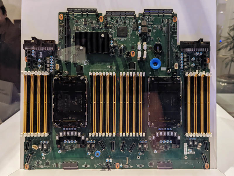 First up, we saw the QCT QuantaGrid D54Q-2U motherboard. Please excuse the lighting on these. The boards were shown behind glass cases with a DJ playing and fun lighting. We were here for the servers.