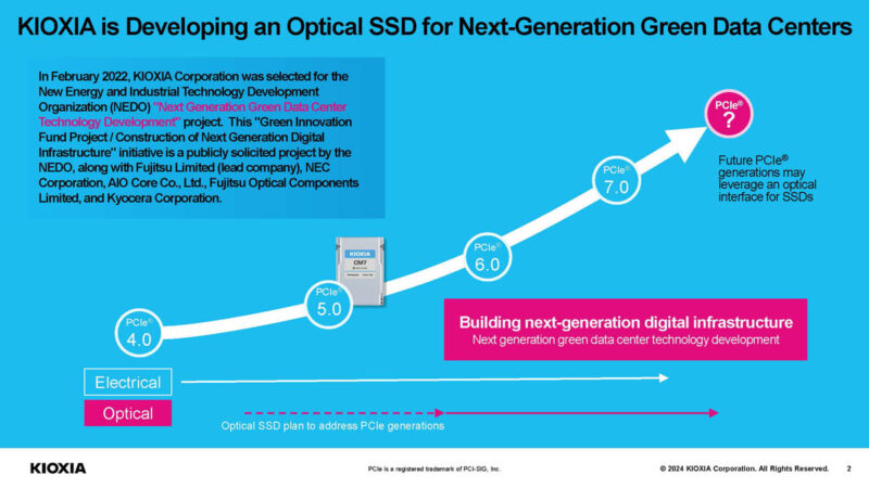 Kioxia, AIO Core, and Kyocera now have a faster PCIe Gen5 over optical SSD. The new generation builds on the previous PCIe Gen4 version but doubles the speeds. This is a technology really designed for future data centers, but it is also one that we saw the previous generation of at FMS 2024 in August 2024.