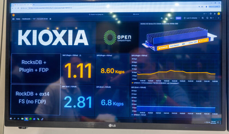 Kioxia also showed a flexible data placement (FDP) demo using the XD8 with RocksDB and saw better performance.