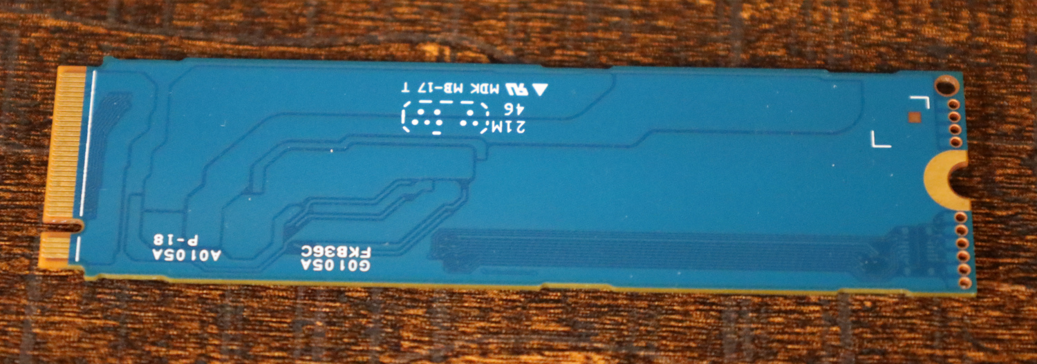 The Kioxia XG8 2TB comes in a single-sided M.2 2280 (80mm) form factor. Our unit came with a decorative sticker and a product label, but we removed them for these pictures.