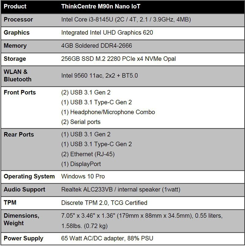 Lenovo ThinkCentre M90n Nano IoT Specifications