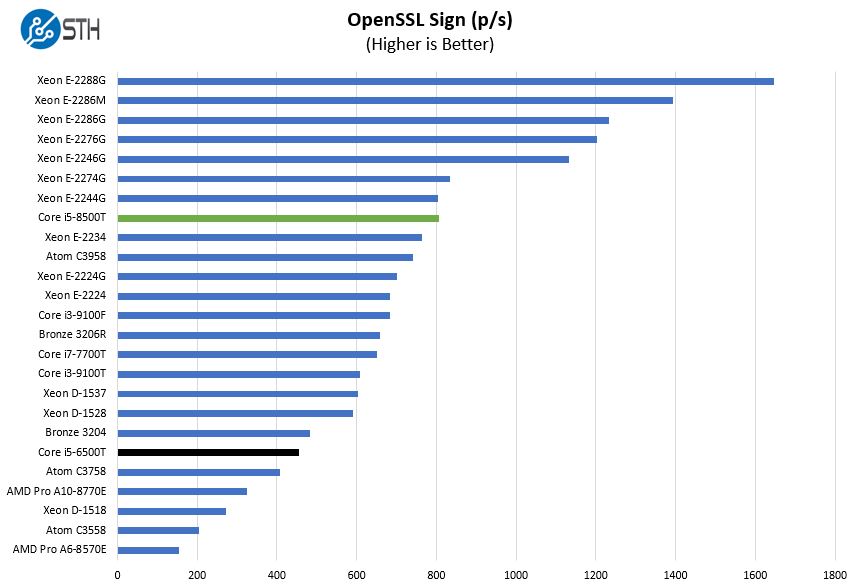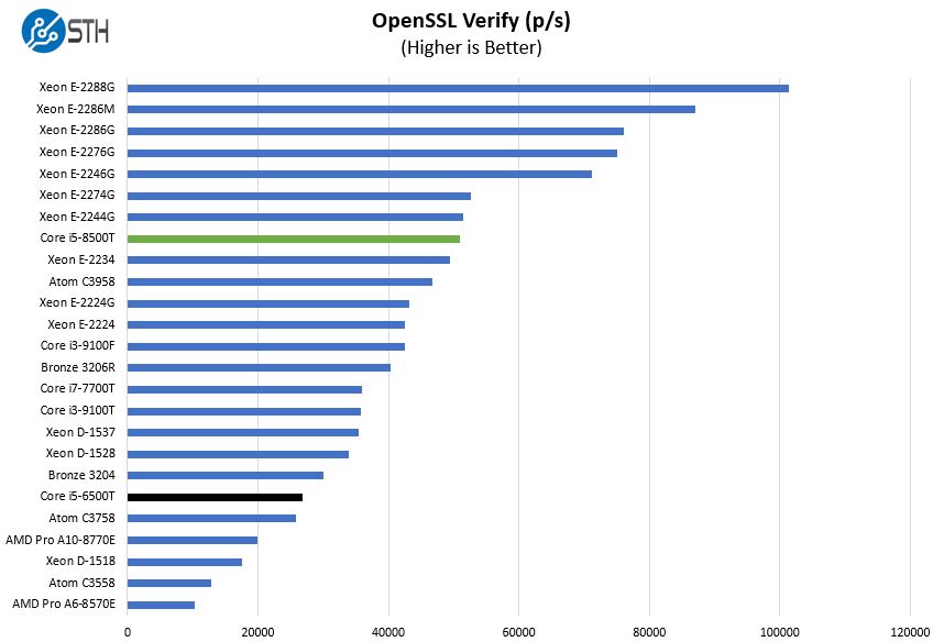 Although this unit has a fairly wide variety of options, we wanted to again focus on the Core i5-6500T v. Core i5-8500T comparison. The move to the Core i5-9500T was relatively small as you can see above. On the other hand, compared to the previous generations, the i5-8500T is an enormous generational update.