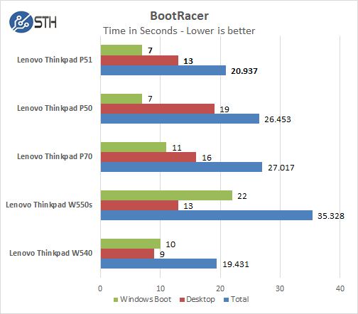 We ran Bootracer on the ThinkPad P51 after we set everything up before any other apps installed. Over time and use, installing other apps, you might find that the laptop might start to slow down or take longer to boot. The leading practice is to keep your laptop clean of unwanted applications that affect booting times. Booting time with the P51 is much improved by 6 seconds over the P50.