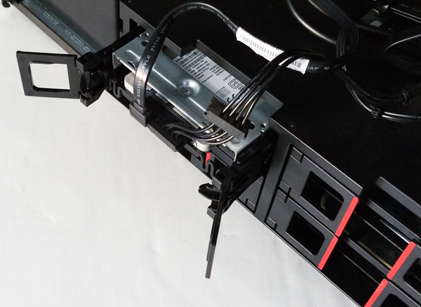 Lenovo’s FLEX drive trays allow for easy removal and support both 2.5” and 3.5” disk sizes. Each tray can support two 2.5” drives giving the total capacity from 4 to 8 drives total.