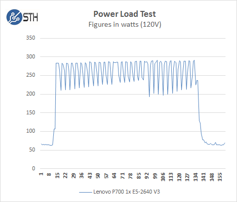 Booting up the P700 with a single processor use little power, it does cap out at ~130watts in our review configuration, then settles down to ~65watts on idle.