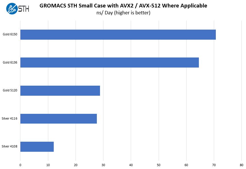 We have a small GROMACS molecule simulation we previewed in the first AMD EPYC 7601 Linux benchmarks piece. In Linux-Bench2 we are using a “small” test for single and dual socket capable machines. Our GROMACS test will use the AVX-512 and AVX2 extensions if available.