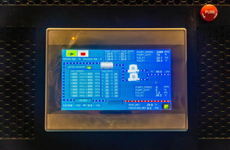 The CDU has its own management interface showing the dual pumps, fan speeds, rpms, pressures, temperatures and more.