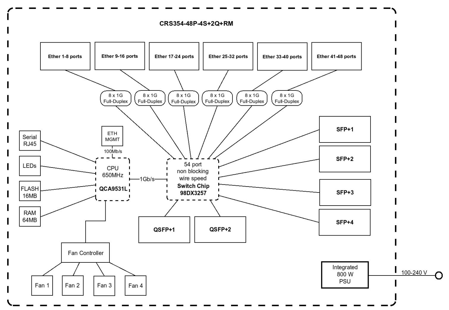 MikroTik CRS354-48P-4S+2Q+RM Internal Overview