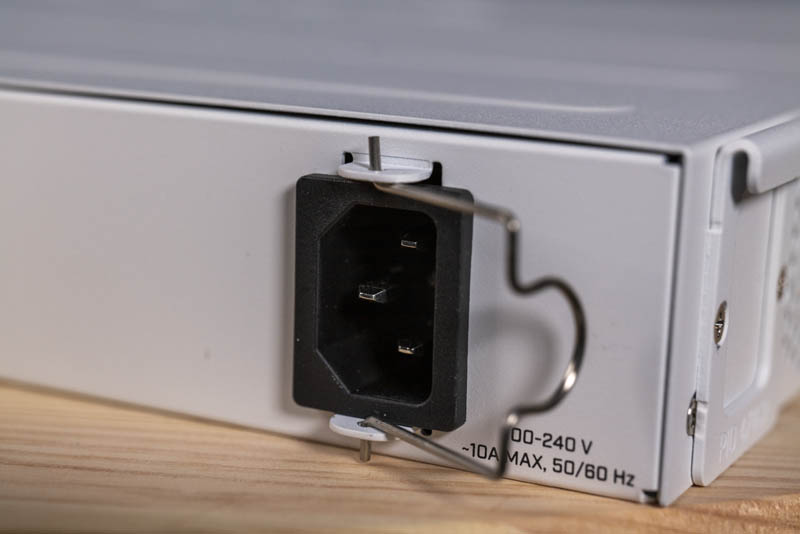 On the rear of the switch, we see a single power input with a wire retention bracket to keep the power input cable locked into place.